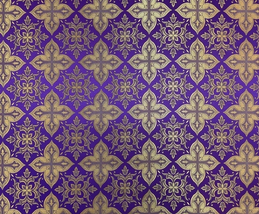 Облачение на престол и жертвенник без отделки галуном и с одной застежкой. Пелена обшита крученой бахромой. Цвет: красный с золотом. Рисунок ткани в ассортименте.