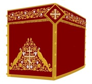 Облачение на престол/жертвенник "Птицы". По центру пелены крест. Пелена украшена по периметру крученой бахромой, так же возможно по углам украсить ее красивыми кистями. Авторский дизайн.