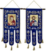 Хоругви. 100% ВЫШИВКА!!! Цена за пару!!! Общий размер 52*116 , размер иконы 26х37 см. Иконы полностью вышитые. Машинная вышивка. Авторский дизайн.
