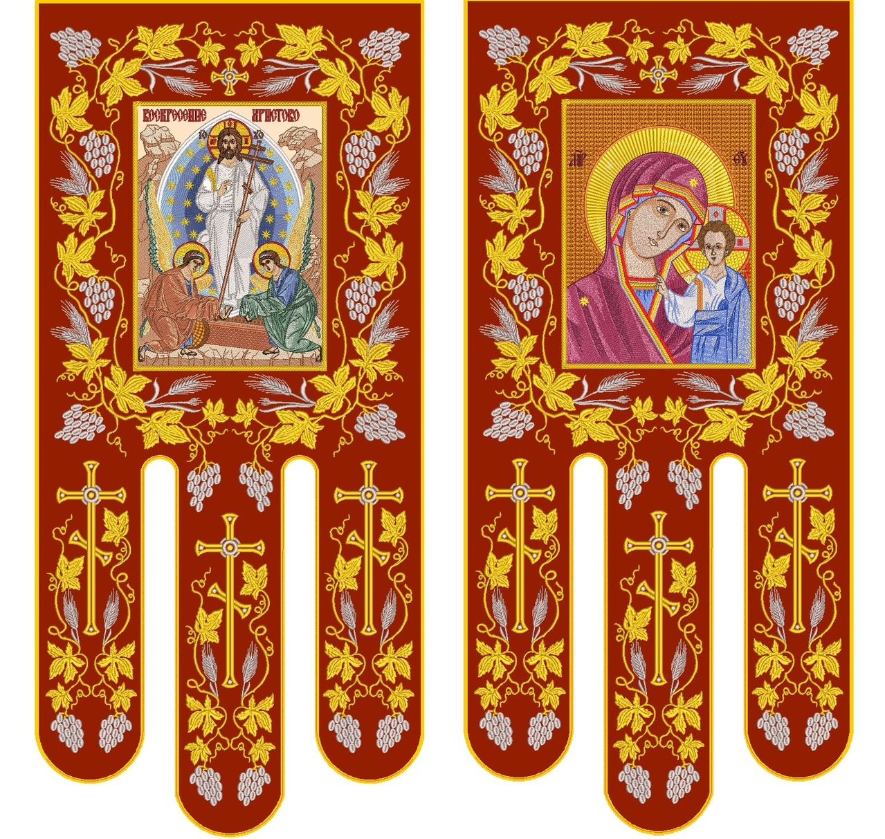 Закладка в Напрестольное Евангелие с вышитым образом Пресвятой Богородицы "Покров". Вышивка вискозой или п/э на гладкой ткани. Может быть использована для вышивки на закладках, лит.