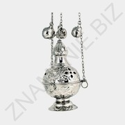 Кадило, высота: 21 см., Ø: 10 см., латунь, чеканка, никелирование, ручная работа, вес: 540гр. Производитель: совместное предприятие Греция-Индия.