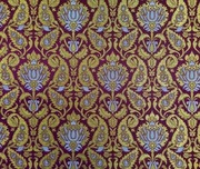 Парча ИПАТИЙ, красная с золотом, с бордовой окантовкой, шир. 150 см, Рахманово