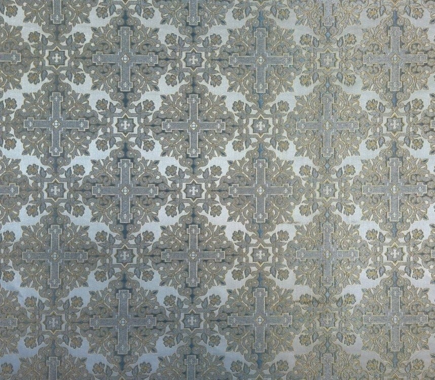Парча РАСЦВЕТШИЙ КРЕСТ, голубая с серебром, шир. 150