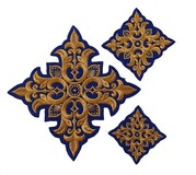 Парча АФОН/ВИЗАНТИЙСКИЙ КРЕСТ, фиолетовая с серебром, шир. 150 см, Рахманово