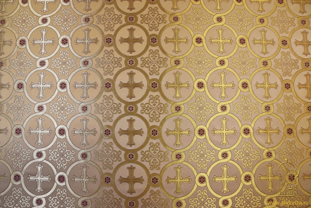 Шелк ВИЗАНТИЙСКИЙ КРЕСТ/ АФОН, желтый с золотом с горчичной окантовкой, шир. 300 см